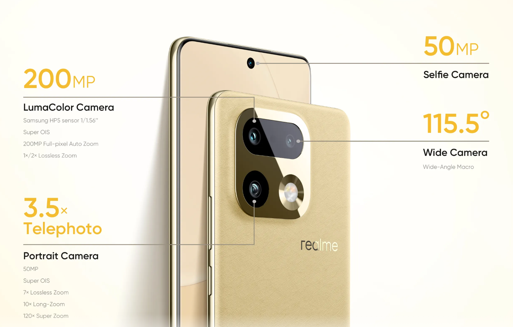 Realme is doubling down on high-resolution photography. Both phones utilize an OIS-assisted 200-megapixel Samsung HP5 main sensor and an 8MP ultra-wide lens.